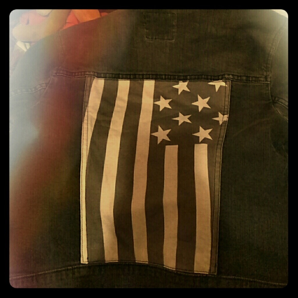 Button up Jean jacket Rock and Republic with flag design in back 4 pockets size medium
