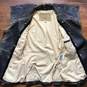 Hi! Is this jacket leather? What are the measurements across the shoulders and the sleeve length? Overall condition? Thank you :-)