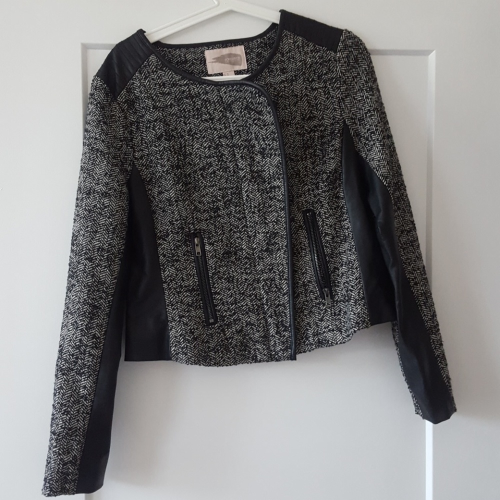Light professional jacket or can be worn as a blazer. Wool and faux leather. Great condition worn only once.