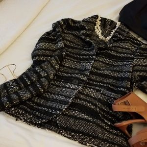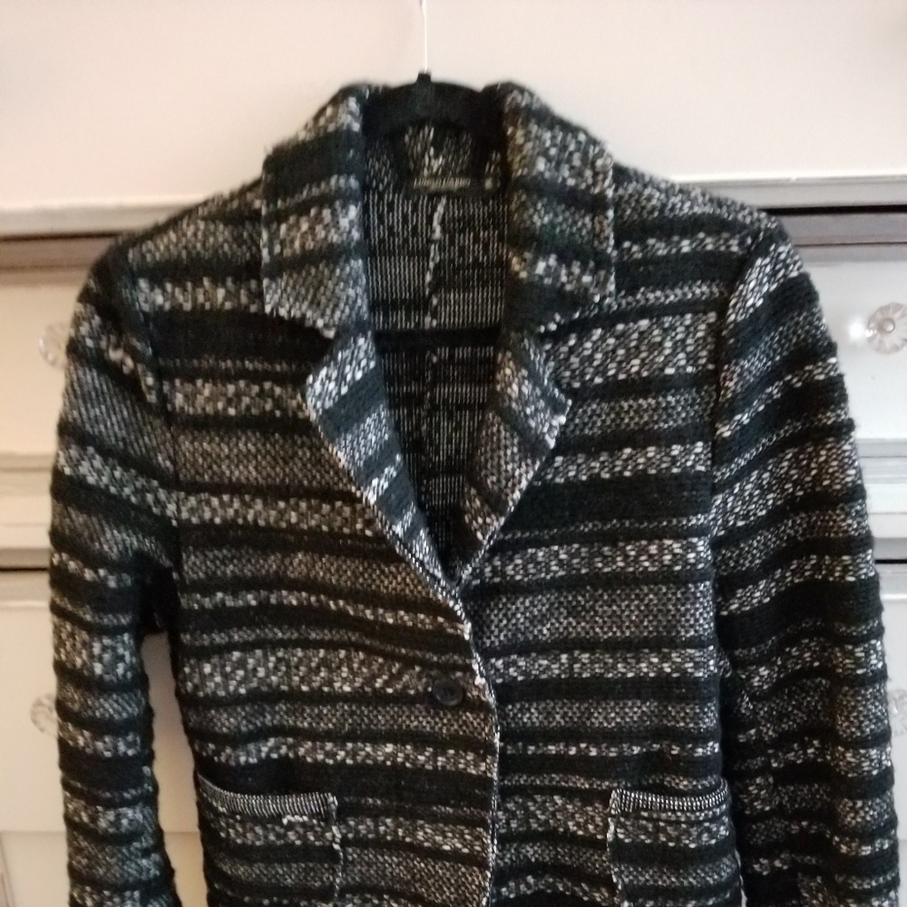 Black and white tweed pocketed jacket, no lining, great cut, will compliment any piece of your wardrobe!