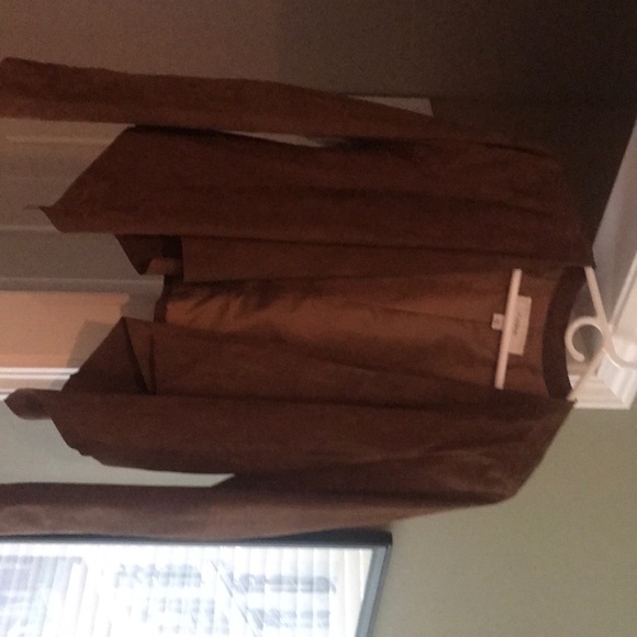 Suede short jacket, long sleeves with cascading front. Super cute, chestnut color.