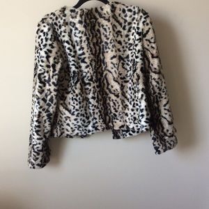 Trendy, but always classic animal print jacket. Side pockets, and buttons in front or wear open.