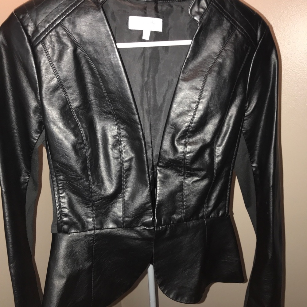 Black leather jacket. (Not real leather) worn once. Perfect for fall.
