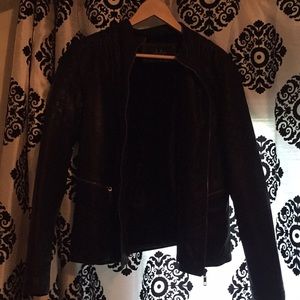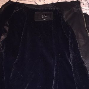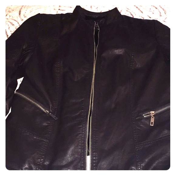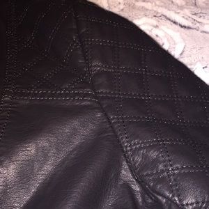 Faux leather form fitting jacket with quilted detail.