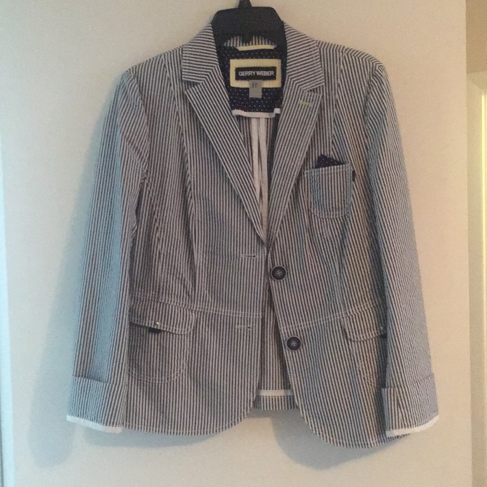 Cute blue stripped jacket with small polkadot pocket square....New Never Worn