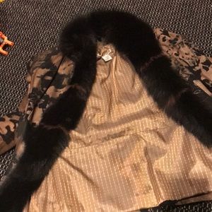 Printed black and good leather and black fox fur jacket