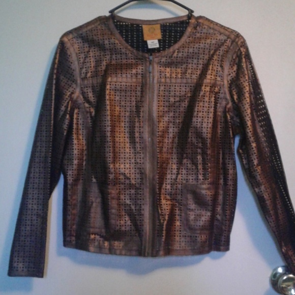 This is a super awesome fashion jacket that has never been worn, it has a really nice print and metallic copper color to it.
