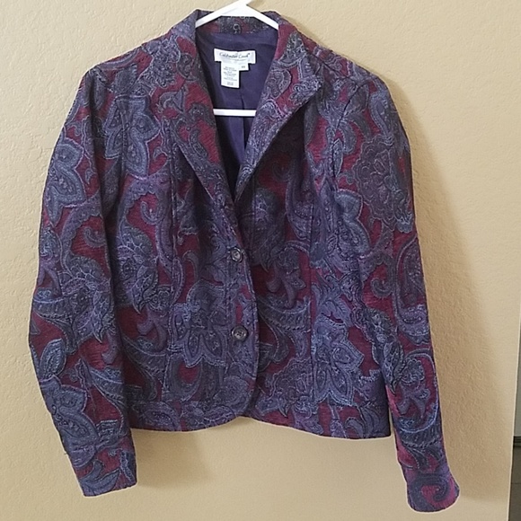 Paisley print, fully lined, 22" from neck to bottom. Coldwater Creek tends to run big. I normally wear size Small and this fits me perfectly. 😊