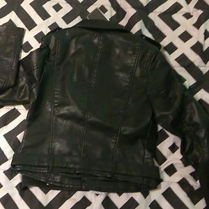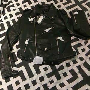 Savannah Crop Leather Look Black Biker Jacket with Belt at the Waist. Brand New Never Worn. Size Small.