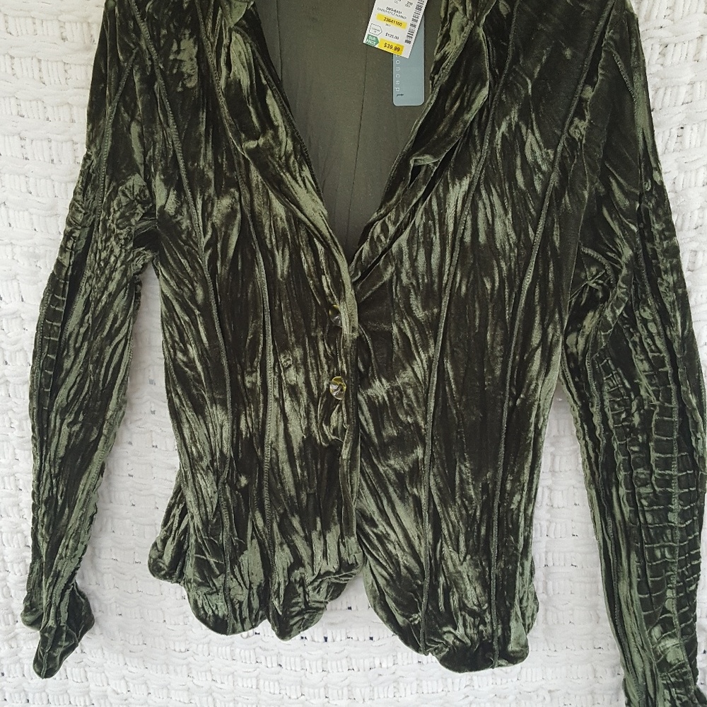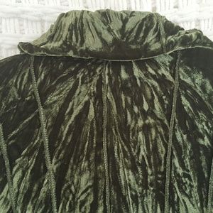 Textured velvet. Topstitched fitting details. Soft. Wear for evening or with jeans.