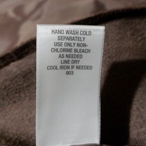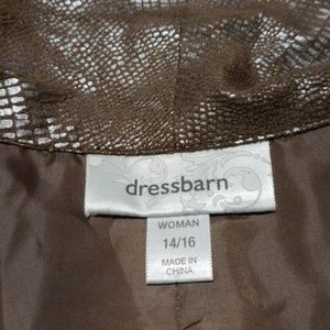 Nice swing type pewter color jacket, open front, animal print within the material, 27" long from shoulder to hemline, 25" waistline, 22-1/2" sleeves, see pics for material and care.