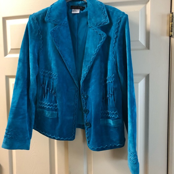 Ultra suede beautiful aqua blue city girl jacket by Nancy Bolen