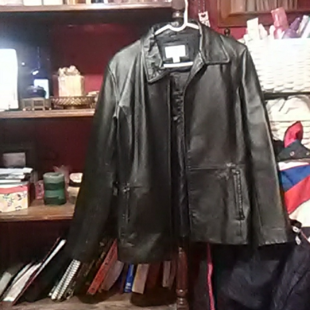Long sleeve black leather coat