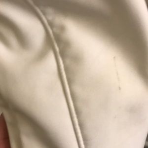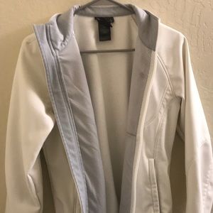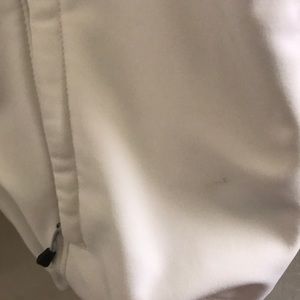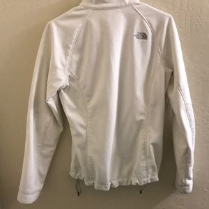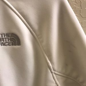 North face jacket with fleece-lined interior. Size M. Draw chord waist band. Does have a few areas with minor stains/marks. No tears or rips. Comfy and cozy piece.