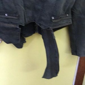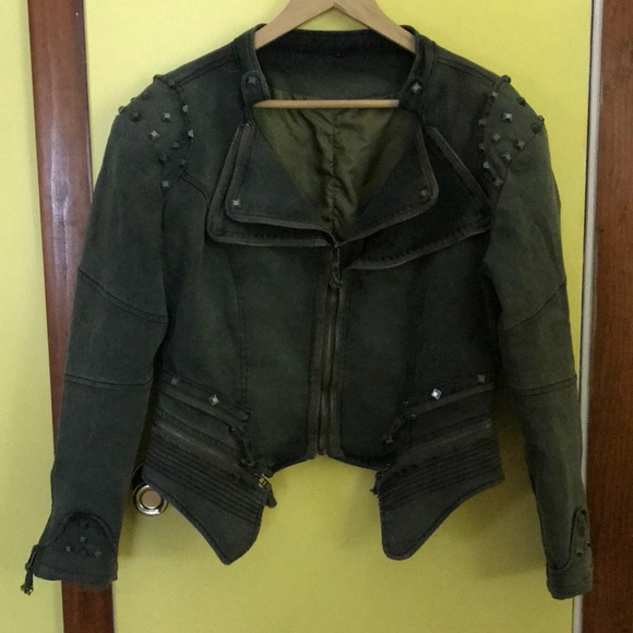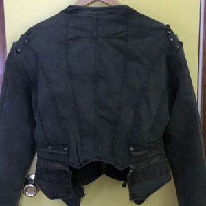 Really cute studded jacket, back two bottom pieces come off to make the jacket shorter in the back or leave on for longer affect.