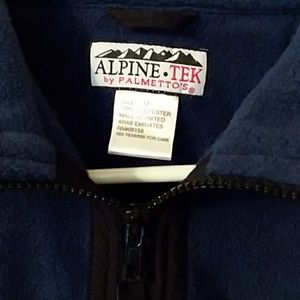 Fleece zip up 2 front side pockets left front zip pocket like new worn a couple of times elastic at the wrists