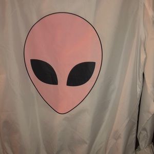 It’s a zumiez jacket with alien on the back and in the front it says “stay weird “