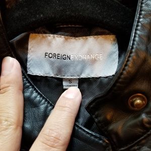 Black leather jacket. Great condition! Pretty much New. Only worn a few times. Has four front pockets that zip! Measurements is laid flat! Does keep you warm in colder weather. Check out all photos.