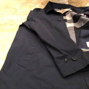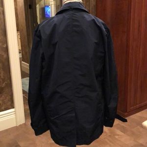 Navy men’s jacket. One button on sleeve broken. Great condition all around.