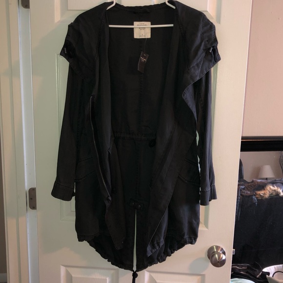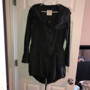Brand new and never worn. Lightweight zip up jacket with drawstrings. Navy/gray color