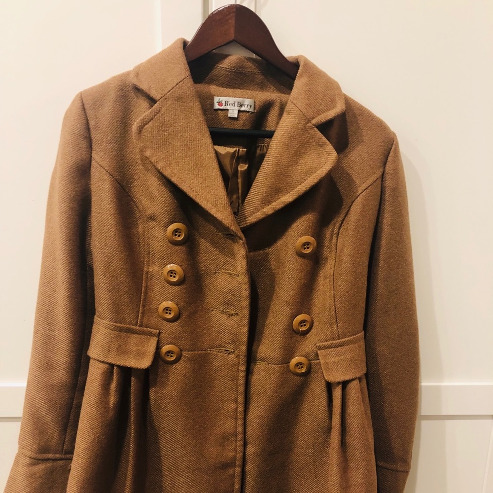 Trench coat. Cut is nice and slimming, makes your waist look small. Missing button.