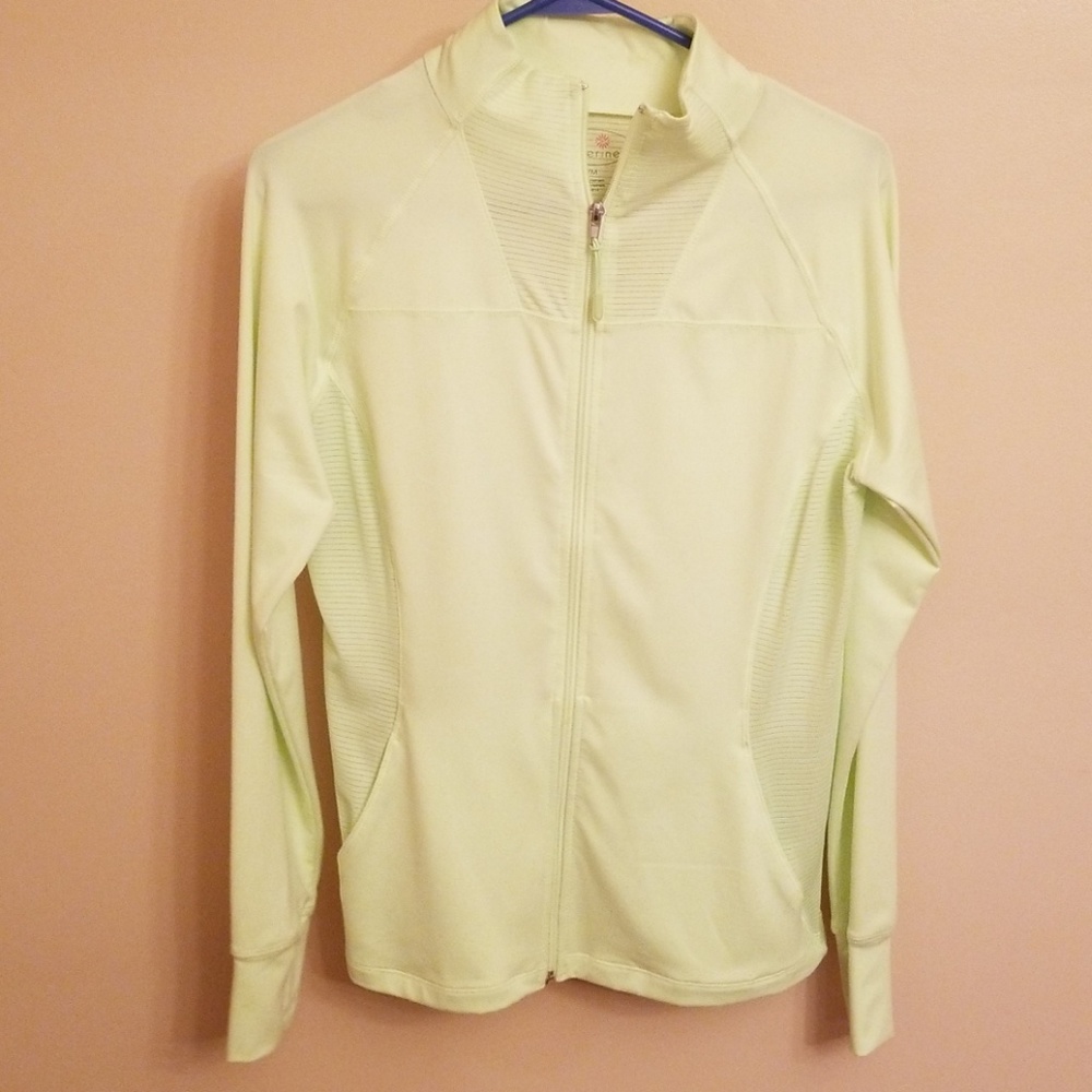 Lime green active wear jacket. Full zip front. Two pockets. Like new. Thumb holes on both sleeves.