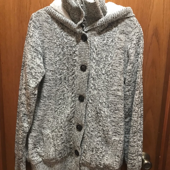 Excellent condition sweater type very warm jacket. Definitely for winter. Smoke free/pet free home. Never warn