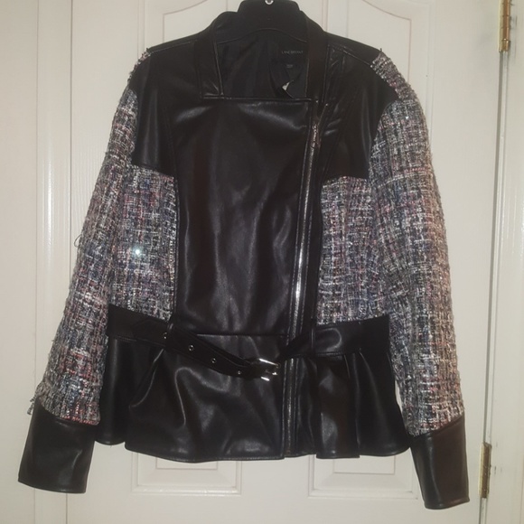 Black fox leather jacket with a belt around the waist double-breasted size 22/24 in Lane Bryant can be worn with blue jeans or black jeans