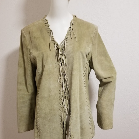 Suede, lined, fringed with side stitches