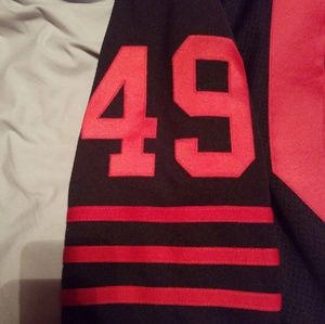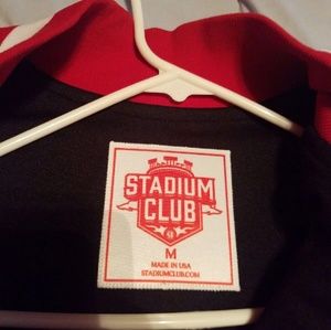 Jersey jacket made with Jersey materials. Stadium club brand out of san francisco california made in USA size medium. Made for the 49er fan empire 49 stitched letters and numbers zip closure