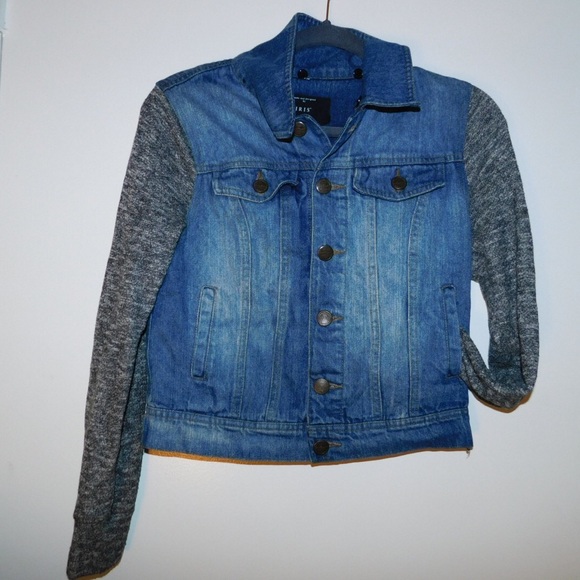Jeans jacket with cotton sleeves thin and comfortable. Only worn a few times.