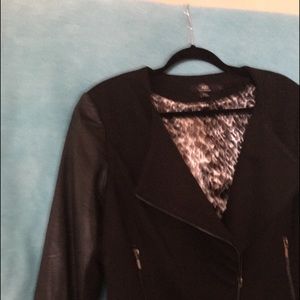 Black jacket waist links. Leopard lining. Zipper front zipper pockets fake leather sleeves. Never worn.