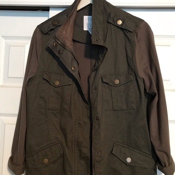 Olive green two toned jacket. Great condition. Runs small. I’m normally a small/medium. Size 6.