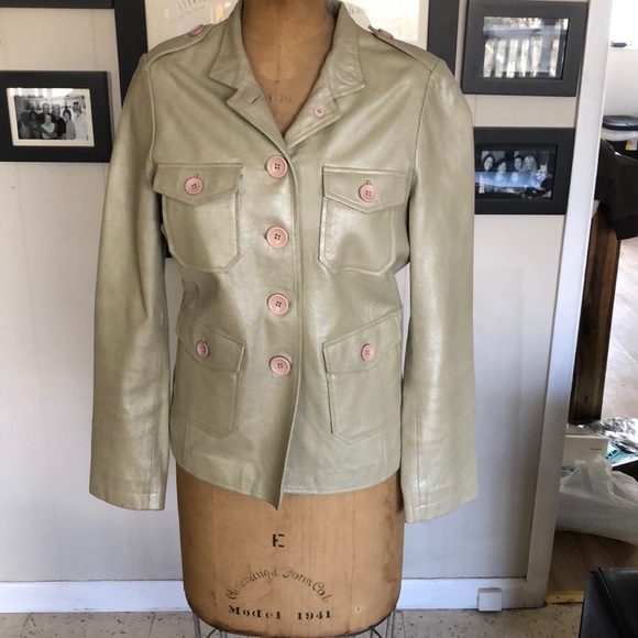 Champagne leather jacket with blush buttons , great with detailed elements