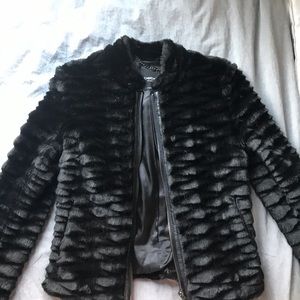 Perfect fluffy going out jacket. Zips up in the front. Very comfy! Worn maybe once!