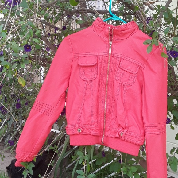 Leather short jacket with silk floral lining very pretty