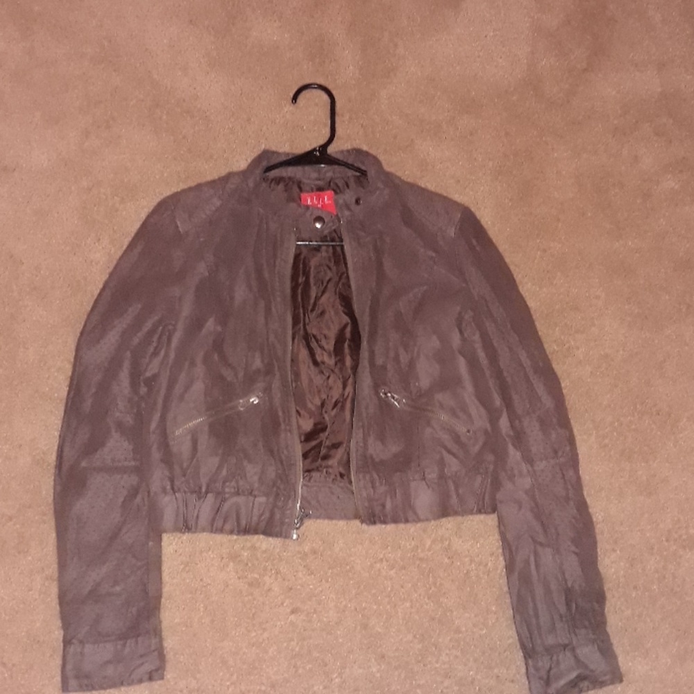 Grey jacket zips up buttons on the sides super cute and fun to wear