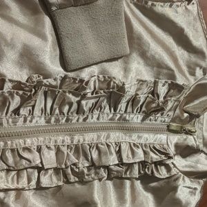 Gold, silk jacket. Only worn once . Ruffles down middle