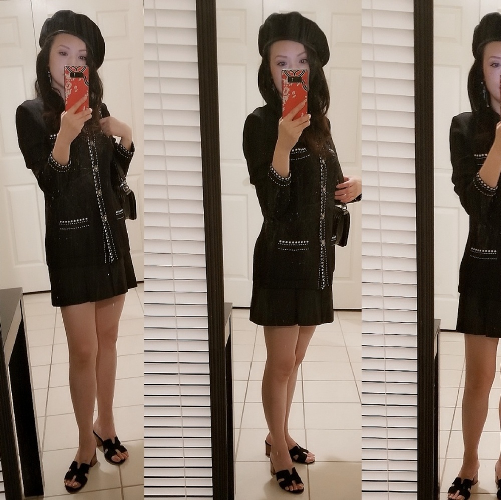 It looks cute in these photos, but I'd like a little more detail. Can we see the neckline and maybe the back of the jacket, and some measurements (shoulders, bust, waist, hip, total length)? Thank you!