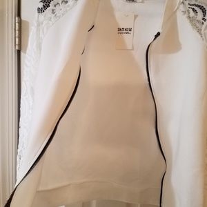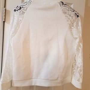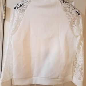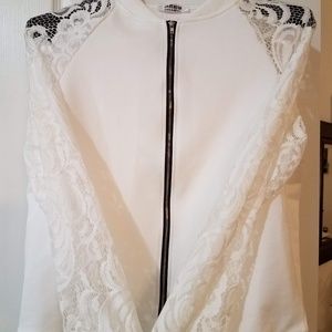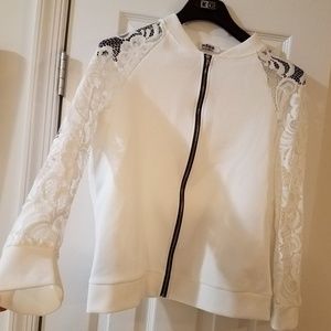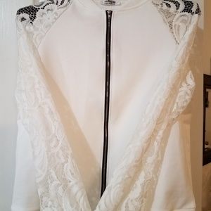 Lite weight white summer jacket. Black zip up the front and lace sleeves. New. Ordered XL. China size.