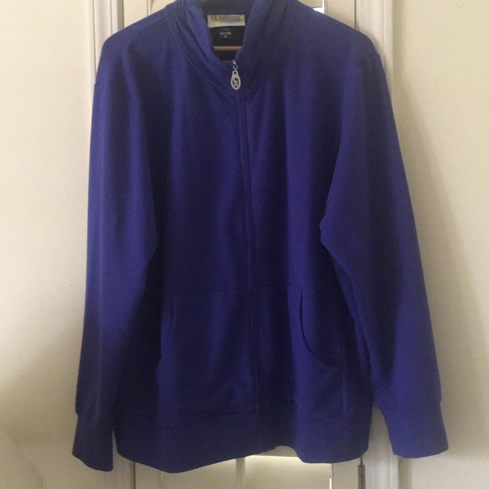 Very comfortable long sleeve, purple/blue color. Great fabric, easily washed. not worn over 4 times.
