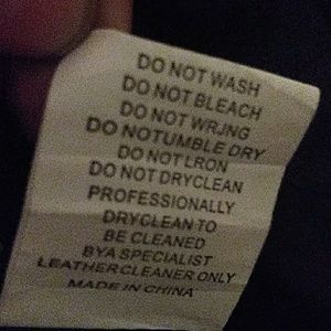 Ok so I deleted some of the other pictutes and added two with me wearing it, front and back along with a couple pictures of the inside label. Says 30% polyester and 70 % PU...looks and feels like real leather.