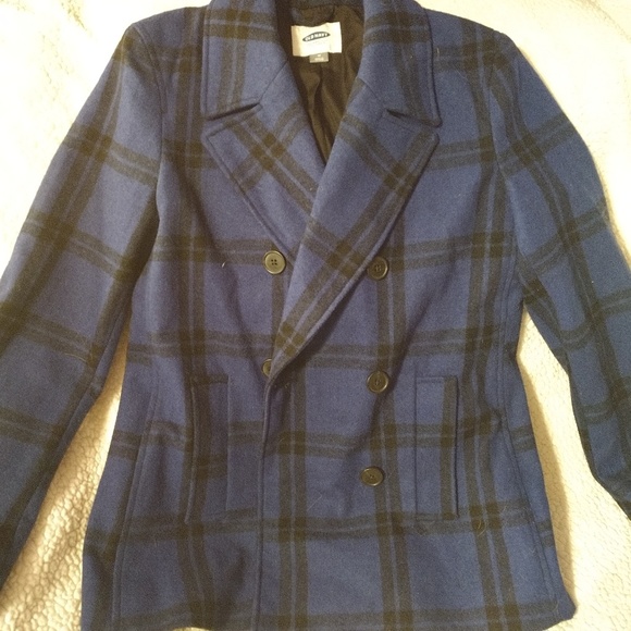 Blue navy plaid double breasted button up jacket