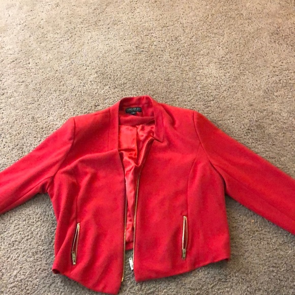 Red jacket with satin inside and gold accent zippers
