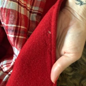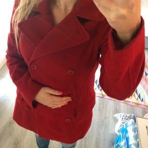 Red Pea Coat from Abercrombie & Fitch. Has a slight snag (see picture) on the lapel, but you cannot see it once the jacket is button upped.