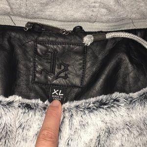 Faux Leather jacket with faux fur inside and removable hood/inner zipper