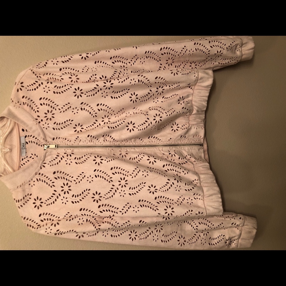 Blush zip up jacket with floral cut outs