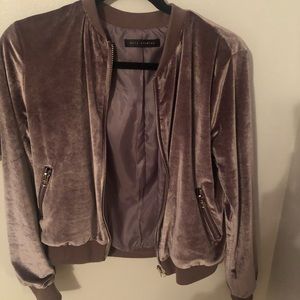 Purple suede zip up bomber jacket