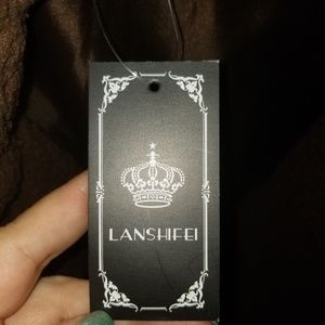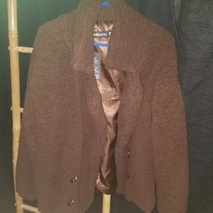 Brown jacket with 2 buttons. Fluffy fabric nice and warm.