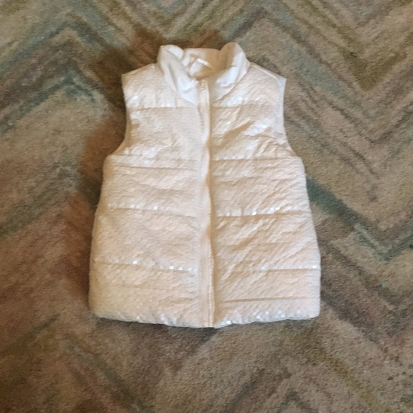 It is whit and has sequins on the front it is a zip up